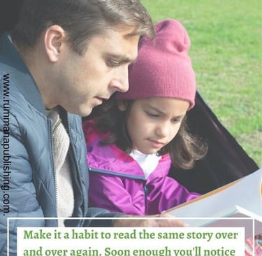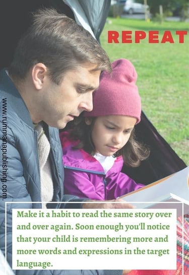 Make it a habit to read the same story over and over again. Soon enough you'll notice that your child is remembering more and more words and expressions in the target language.
