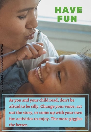 As you and your child read, don't be afraid to be silly. Change your voice, act out the story, or come up with your own fun activities to enjoy. the more giggles the better.