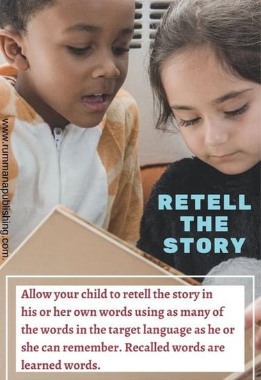 Allow your child to retell the story in his or her own words using as many of the words in the target language as he or she can remember. Recalled words are learned words.