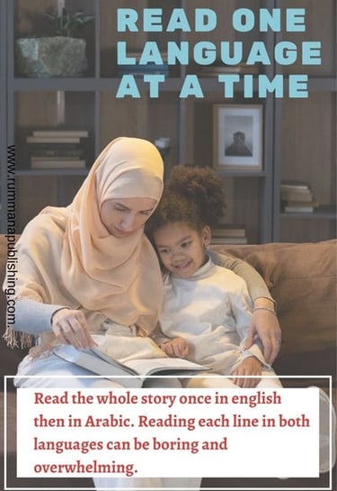 Read the whole story once in English and then read it again in Arabic. Reading each line in both languages can be boring and overwhelming.