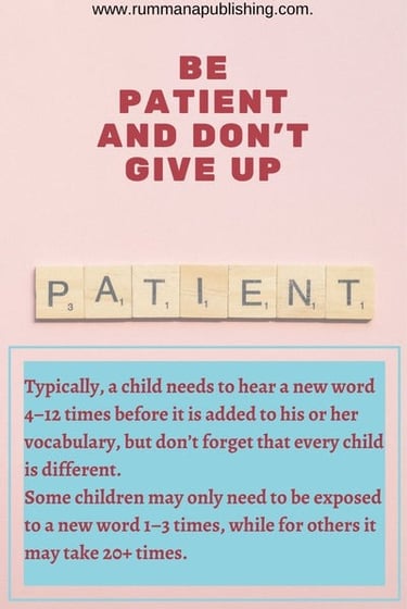 Typically, a child needs to hear a new word 4-12 times before it is added to his or her vocabulary, but don't forget that every child is different. Some children may only need to be exposed to a new word 1-3 times, while for others it may take 20+ times.
